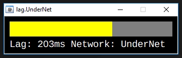 ; Lag Meter v1.1 (multi network) - by entropy 2018 menu channel,status,menubar,query { - $iif($network,$network $+ 's Lag) { lag } - } menu @lag.* { Close { window -c $+(@lag.,$network) | end } } alias lag { window -c $+(@lag.,$network) window -poCdw0k0 +tn $+(@lag.,$network) -1 -1 350 105 %lag = $ticks if ($server) { start } } alias -l start { %lag = $ticks .quote PING $ticks .timerlag $+ $network 0 5 .quote PING $!ticks } alias -l end { .timerlag $+ $network off } on *:disconnect:{ .timerlag $+ $network off } on ^*:PONG:{ if (%lag && $window($+(@lag.,$network))) { clear $+(@lag.,$network) drawrect -f $+(@lag.,$network) 01 16 0 0 375 100 drawrect -f $+(@lag.,$network) 14 12 10 10 322 30 var %b = $calc($ticks - $iif($2 isnum,$2,%lag)) if (%b >= 400) { var %color = 04 } elseif (%b >= 300) { var %color = 07 } elseif (%b >= 200) { var %color = 08 } elseif (%b >= 100) { var %color = 11 } elseif (%b isnum 1-559) { var %color = 09 } if (%b >= 400) { drawrect -f $+(@lag.,$network) %color 14 10 10 322 30 } elseif (%b >= 1) { drawrect -f $+(@lag.,$network) %color 14 10 10 %b 30 } drawtext $+(@lag.,$network) 00 10 45 Lag: %b $+ ms Network: $network } halt }