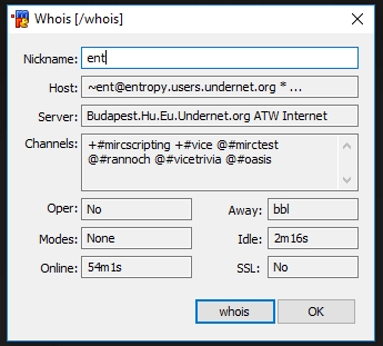 This snippet opens a neat and tidy whois dialog! (on /whois).