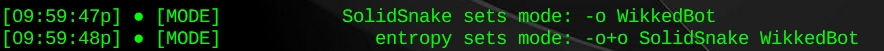 ; Deop Protection v1.3 (for channels without services) - by entropy 2018 ; Set: %protect to the nicks to protect ; Set #test to the channel to use it on on !@*:deop:#test:{ %protect = ent entropy WikkedBot if ($nick != $opnick) { if ($istok(%protect,$opnick,32)) { %nicks = %nicks $opnick .timermode -om 1 200 pushmodex # $+(-o+,$str(o,$numtok(%nicks,32))) $nick %nicks if ($numtok(%nicks,32) >= 3) { ban -ku60 # $nick 3 Mass Deop } .timernicks -o 1 2 unset %nicks } } } alias -l pushmodex { if (-t* iswm $1) { var %time = $mid($1,3) , %count = 0 | tokenize 32 $2- } else { var %time = 0 , %count = 0 } var %modespl = $modespl , %chan = $1 , %modes = $2 , %parms = $3- , %x = 1 , %y = $len(%modes) , %lwhich = + , %which = + , %a , %b tokenize 44 $chanmodes var %t1 = $1 , %t2 = $nickmode $+ $2 , %t3 = $3 , %t4 = $4 tokenize 32 %parms while (%x <= %y) { var %t = $mid(%modes,%x,1) if (%t isin +-) { var %lwhich = %which , %which = %t } else { if (%t isincs $gettok(%t1 %t2 %t3, 1- $pos(.-+, %which),32)) { var %b = %b $1 tokenize 32 $2- } var %a = $+(%a,$iif(!%a || %lwhich != %which,%which),%t) , %lwhich = %which if ($len($remove(%a,+,-)) = %modespl) { if (!%time) { mode %chan %a %b } else { .timer -m 1 $calc(%time * %count) mode %chan %a %b } var %a = "" , %b = "", %count = %count + 1 } } inc %x } if (%a) { if (!%time) { mode %chan %a %b } else { .timer -m 1 $calc(%time * %count) mode %chan %a %b } } }