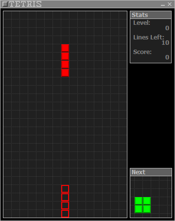 alias Tetris { Tetris:Cleanup window -Bdfhnpl20 +d @Tetris:Buffer -1 -1 376 454 if (!$isfile($scriptdirTetris.bmp)) { Tetris:MakeSprites } drawpic -c @Tetris:Buffer 0 0 $qt($scriptdirTetris.bmp) var %x 1 | while (%x < 26) { aline -l @Tetris:Buffer 0 0 0 0 0 0 0 0 0 0 0 0 0 0 0 | inc %x } window -nBdfpk0C +d @Tetris -1 -1 360 454 set -e %Tetris:State Play Tetris:Shape window -a @Tetris Tetris:Play } alias -l Tetris:Cleanup { .TimerTetris Off | unset %Tetris:* | close -@ @Tetris* } alias -l Tetris:Shape { :loop set -e %Tetris:Shape %Tetris:nShape if ($r(1,7) == 1) { set %Tetris:nShape r 1 0 8 -1 8 -2 8 -3 8 } if ($v1 == 2) { set %Tetris:nShape g 1 0 8 0 7 -1 7 -1 8 } if ($v1 == 3) { set %Tetris:nShape b 1 0 8 0 7 -1 8 -1 9 } if ($v1 == 4) { set %Tetris:nShape o 1 0 8 0 9 -1 7 -1 8 } if ($v1 == 5) { set %Tetris:nShape y 1 0 8 -1 8 0 9 0 7 } if ($v1 == 6) { set %Tetris:nShape p 1 0 8 -1 8 -2 8 -2 7 } if ($v1 == 7) { set %Tetris:nShape t 1 0 8 -1 8 -2 8 -2 9 } if (!%Tetris:Shape) { set -e %Tetris:Shape %Tetris:nShape | goto loop } Tetris:Land } alias -l Tetris:Land { tokenize 32 %Tetris:Shape while ($3 < 25) && (!$gettok($line(@Tetris:Buffer,$calc($3 +1),1),$4,32) && !$gettok($line(@Tetris:Buffer,$calc($5 +1),1),$6,32) && !$gettok($line(@Tetris:Buffer,$calc($7 +1),1),$8,32) && !$gettok($line(@Tetris:Buffer,$calc($9 +1),1),$10,32)) { tokenize 32 $1-2 $calc($3 + 1) $4 $calc($5 +1) $6 $calc($7 + 1) $8 $calc($9 + 1) $10 } set -e %Tetris:Land $1- } alias -l Tetris:Redraw { if (!$window(@Tetris) || !$window(@Tetris:Buffer)) { Tetris:Cleanup } drawcopy -n @Tetris:Buffer 0 0 360 454 @Tetris 0 0 var %x = 25, %c while ((%x && $line(@Tetris:Buffer,%x,1) != 0 0 0 0 0 0 0 0 0 0 0 0 0 0 0)) { tokenize 32 $v1 var %y = $calc((%x -1) * 17 + 23) if ($1) { drawcopy -n @Tetris:Buffer 360 $calc(16 * ($pos(rgboypt,$1) - 1)) 16 16 @Tetris 7 %y } if ($2) { drawcopy -n @Tetris:Buffer 360 $calc(16 * ($pos(rgboypt,$2) - 1)) 16 16 @Tetris 24 %y } if ($3) { drawcopy -n @Tetris:Buffer 360 $calc(16 * ($pos(rgboypt,$3) - 1)) 16 16 @Tetris 41 %y } if ($4) { drawcopy -n @Tetris:Buffer 360 $calc(16 * ($pos(rgboypt,$4) - 1)) 16 16 @Tetris 58 %y } if ($5) { drawcopy -n @Tetris:Buffer 360 $calc(16 * ($pos(rgboypt,$5) - 1)) 16 16 @Tetris 75 %y } if ($6) { drawcopy -n @Tetris:Buffer 360 $calc(16 * ($pos(rgboypt,$6) - 1)) 16 16 @Tetris 92 %y } if ($7) { drawcopy -n @Tetris:Buffer 360 $calc(16 * ($pos(rgboypt,$7) - 1)) 16 16 @Tetris 109 %y } if ($8) { drawcopy -n @Tetris:Buffer 360 $calc(16 * ($pos(rgboypt,$8) - 1)) 16 16 @Tetris 126 %y } if ($9) { drawcopy -n @Tetris:Buffer 360 $calc(16 * ($pos(rgboypt,$9) - 1)) 16 16 @Tetris 143 %y } if ($10) { drawcopy -n @Tetris:Buffer 360 $calc(16 * ($pos(rgboypt,$10) - 1)) 16 16 @Tetris 160 %y } if ($11) { drawcopy -n @Tetris:Buffer 360 $calc(16 * ($pos(rgboypt,$11) - 1)) 16 16 @Tetris 177 %y } if ($12) { drawcopy -n @Tetris:Buffer 360 $calc(16 * ($pos(rgboypt,$12) - 1)) 16 16 @Tetris 194 %y } if ($13) { drawcopy -n @Tetris:Buffer 360 $calc(16 * ($pos(rgboypt,$13) - 1)) 16 16 @Tetris 211 %y } if ($14) { drawcopy -n @Tetris:Buffer 360 $calc(16 * ($pos(rgboypt,$14) - 1)) 16 16 @Tetris 228 %y } if ($15) { drawcopy -n @Tetris:Buffer 360 $calc(16 * ($pos(rgboypt,$15) - 1)) 16 16 @Tetris 245 %y } dec %x } tokenize 32 %Tetris:nShape %c = $calc(16 * ($pos(rgboypt,$1) - 1)) drawcopy -n @Tetris:Buffer 360 %c 16 16 @Tetris $calc(($4 -8)*17+294) $calc(($3 +3)*17+371) drawcopy -n @Tetris:Buffer 360 %c 16 16 @Tetris $calc(($6 -8)*17+294) $calc(($5 +3)*17+371) drawcopy -n @Tetris:Buffer 360 %c 16 16 @Tetris $calc(($8 -8)*17+294) $calc(($7 +3)*17+371) drawcopy -n @Tetris:Buffer 360 %c 16 16 @Tetris $calc(($10 -8)*17+294) $calc(($9 +3)*17+371) var %lv = $floor($calc($iif(%Tetris:Lines,$v1,0) / 10)) var %ln = $iif($calc(10 - %Tetris:Lines % 10),$v1,10) var %sc = $iif(%Tetris:Score,$v1,0) drawtext -rno @Tetris $rgb(128,128,128) Tahoma 12 $calc(348 - $width(%lv,Tahoma,12,1)) 50 %lv drawtext -rno @Tetris $rgb(128,128,128) Tahoma 12 $calc(348 - $width(%ln,Tahoma,12,1)) 80 %ln drawtext -rno @Tetris $rgb(128,128,128) Tahoma 12 $calc(348 - $width(%sc,Tahoma,12,1)) 110 %sc if (%Tetris:Land && !%TetrisHideGhost) { tokenize 32 %Tetris:Land var %c = $gettok(255 65280 16711680 33023 65535 16711935 16776960,$pos(rgboypt,$1),32) if ($3 > 0) drawrect -rn @Tetris %c 2 $calc($4 *17 - 10) $calc($3 *17 + 6) 16 16 if ($5 > 0) drawrect -rn @Tetris %c 2 $calc($6 *17 - 10) $calc($5 *17 + 6) 16 16 if ($7 > 0) drawrect -rn @Tetris %c 2 $calc($8 *17 - 10) $calc($7 *17 + 6) 16 16 if ($9 > 0) drawrect -rn @Tetris %c 2 $calc($10 *17 - 10) $calc($9 *17 + 6) 16 16 } tokenize 32 %Tetris:Shape %c = $calc(16 * ($pos(rgboypt,$1) - 1)) if ($3 > 0) drawcopy -n @Tetris:Buffer 360 %c 16 16 @Tetris $calc(-10 + $4 * 17) $calc($3 * 17 + 6) if ($5 > 0) drawcopy -n @Tetris:Buffer 360 %c 16 16 @Tetris $calc(-10 + $6 * 17) $calc($5 * 17 + 6) if ($7 > 0) drawcopy -n @Tetris:Buffer 360 %c 16 16 @Tetris $calc(-10 + $8 * 17) $calc($7 * 17 + 6) if ($9 > 0) drawcopy -n @Tetris:Buffer 360 %c 16 16 @Tetris $calc(-10 + $10 * 17) $calc($9 * 17 + 6) if (%Tetris:State == GAMEOVER) || (%Tetris:State == PAUSED) { var %m = $v1 drawrect -rfn @Tetris $rgb(96,96,96) 1 34 185 200 100 drawrect -rn @Tetris $rgb(192,192,192) 1 34 185 200 100 drawtext -rno @Tetris 0 "Courier New" 40 $calc(34 + (200 - $width(%m,Courier New,40,1)) /2) $calc(185 + (100 - $height(%m,Courier New,40)) / 2) %m } drawdot @Tetris } alias -l Tetris:MakeSprites { if ($isfile($scriptdirTetris.bmp)) { .remove $qt($scriptdirTetris.bmp) } var %x = 1, %c = 255,000,000 000,255,000 000,000,255 255,128,000 255,255,000 255,000,255 000,255,255 if ($window(@Tetris:MakeSprites)) { window -c $v1 } window -Bdfhnp +d @Tetris:MakeSprites -1 -1 376 454 drawrect -nfr @Tetris:MakeSprites 0 1 0 0 360 454 drawrect -nfr @Tetris:MakeSprites $rgb(128,128,128) 1 1 1 358 15 drawrect -nrf @Tetris:MakeSprites $rgb(32,32,32) 1 7 23 254 424 268 39 85 90 drawrect -nfr @Tetris:MakeSprites $rgb(96,96,96) 1 268 346 85 15 268 23 85 15 drawre