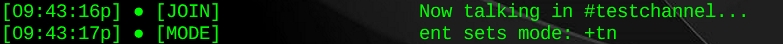 ; Set Chan Modes on Join v1.0 - by entropy 2017 on me:*:join:#:{ .timer -om 1 400 checknicks # } alias checknicks { if ($nick($1,0) == 1 && $me isop $1) { mode $1 +nt } }