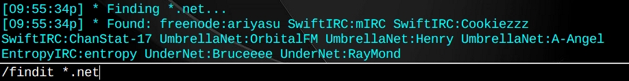 Searches all networks and channels for IP/hostmask.