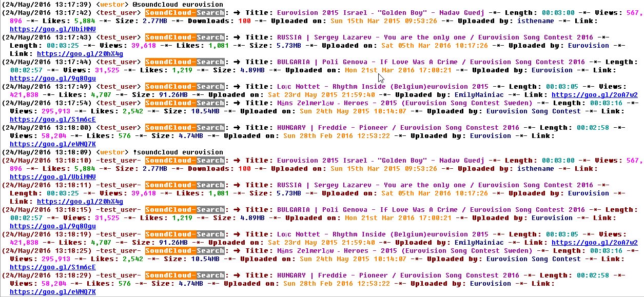 This module let you search in soundcloud.com for the given text and all the results that will be found
