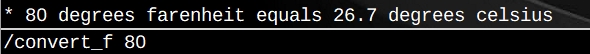 ; Convert Celsius/Farenheit v1.0 - by entropy 2017 ; Example: /convert_f 80 -or- /convert_c 28 - etc... alias convert_f { var %f, %c %f = $1 %c = $round($calc((5 / 9) * (%f - 32)),1) echo -a * %f degrees farenheit equals %c degrees celsius } alias convert_c { var %f, %c %c = $1 %f = $round($calc((9 / 5) * %c + 32),1) echo -a * %c degrees celsius equals %f degrees farenheit }