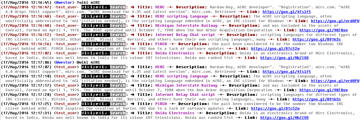 This module let you search in wikipedia.org for the given text and all the results that will be found